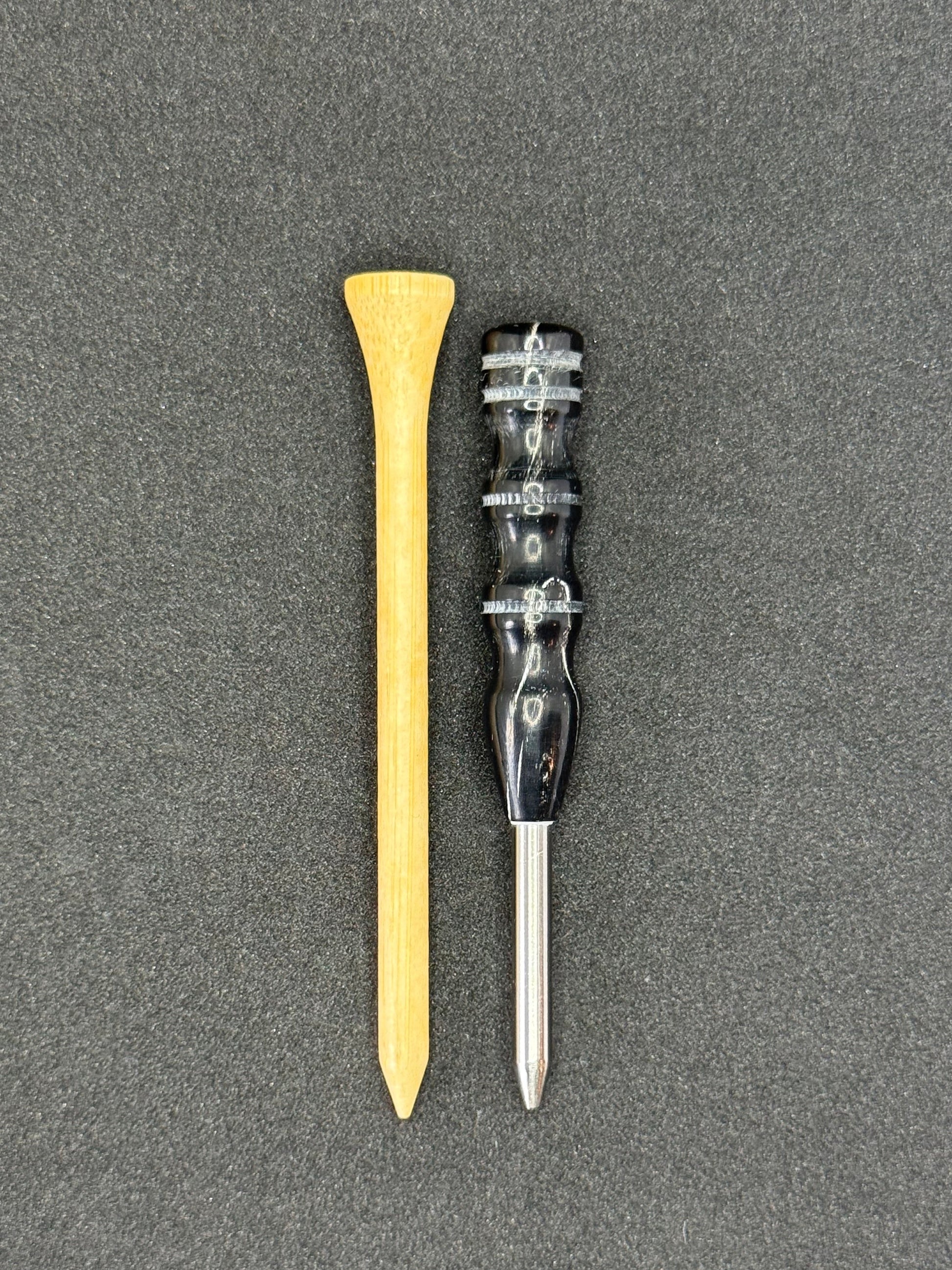 Upgrade your golf essentials with a handcrafted divot tool built for performance and style. Each piece is individually lathe-turned from vibrant, high-quality bison horn and fitted with solid 4mm titanium tines for exceptional strength and durability.
