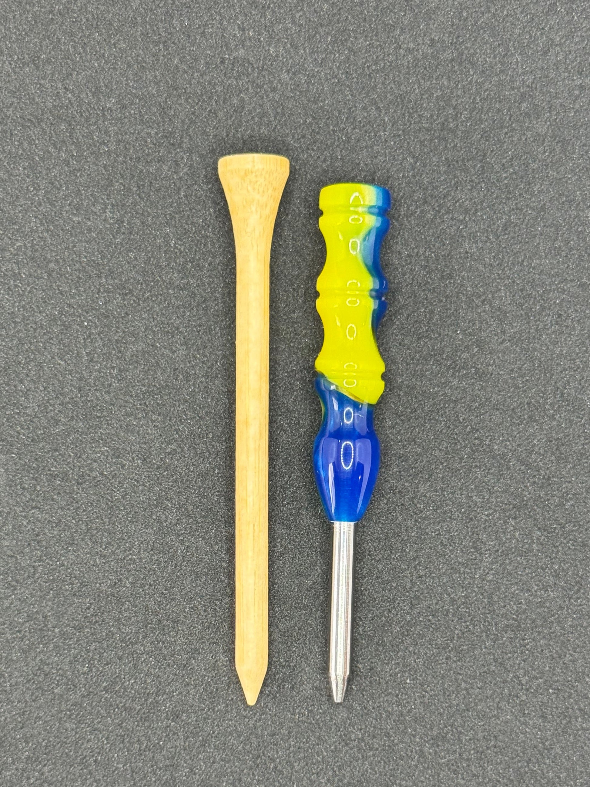 Upgrade your golf essentials with a handcrafted divot tool built for performance and style. Each piece is individually lathe-turned from vibrant, high-quality acrylic and fitted with solid 4mm titanium tines for exceptional strength and durability.